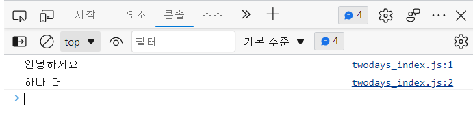 console.log('하나 더') //콘솔에 기록을 남긴다. 괄호 안에 있는 내용을 기록한다.