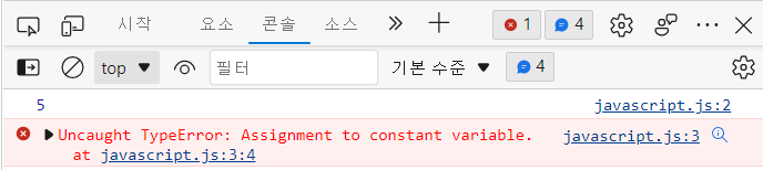 bb = 7; // 상수는 값 변경이 불가능하기 때문에 오류가 발생한다.
