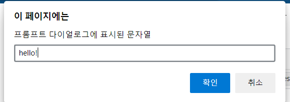 window 객체의 prompt(x) 메소드는 사용자로부터 문자열을 입력받을 수 있는 다이얼로그 박스를 열어주는 메소드이다.