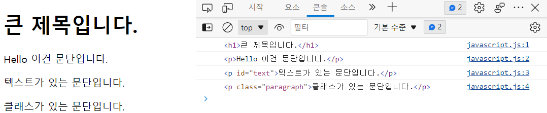 console.log(document.querySelector(".paragraph")) // class가 paragraph인 것을 선택한다.