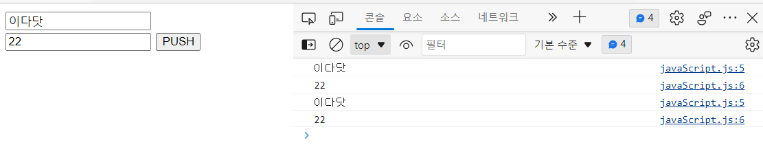 여기에서 사용자가 입력한 값을 읽어들일 때에는 요소의 value 속성에 접근하자.