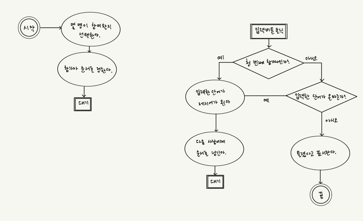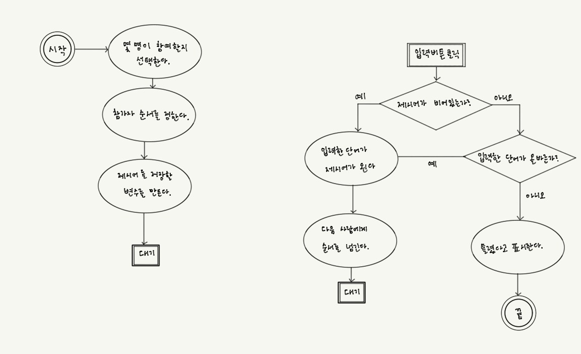 여기에서는 먼저 끝말잇기가 어떤 식으로 진행되는지 말이나 그림으로 표현해보자.