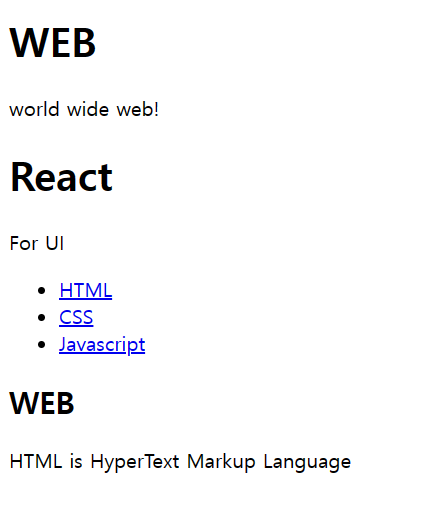 <Content title="WEB" desc="HTML is HyperText Markup Language"></Content>
