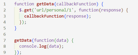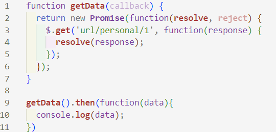 9번째 줄 : getData()의 실행이 끝나면 then()이 호출된다.