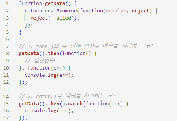 1. then()의 두 번째 인자로 에러를 처리하는 방법